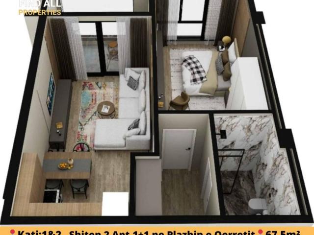 Organizimi: •Ambjent ndenje •Ambient gatim •2 Dhoma gjumi •2 Tualete •⁠Ballkon